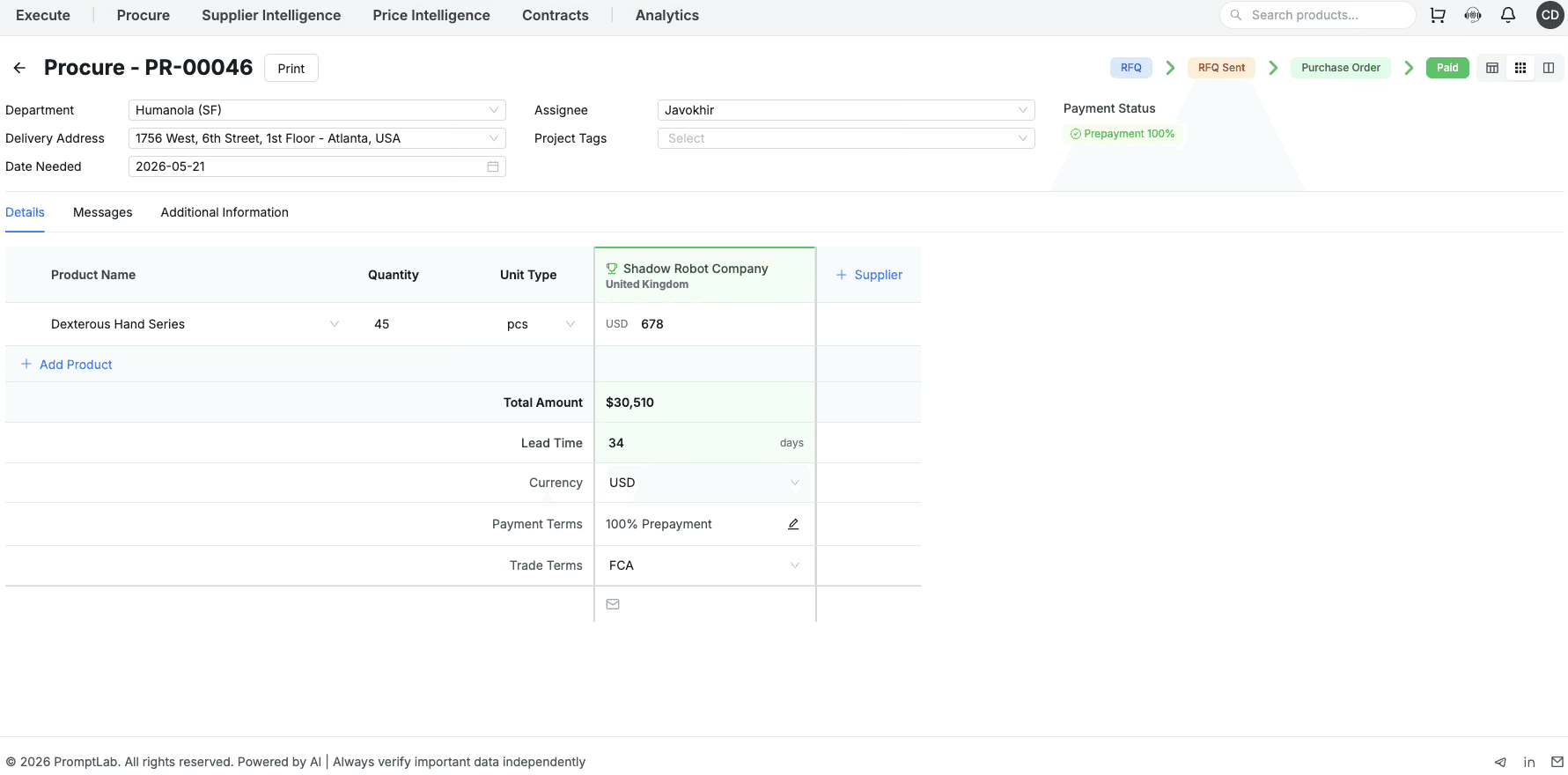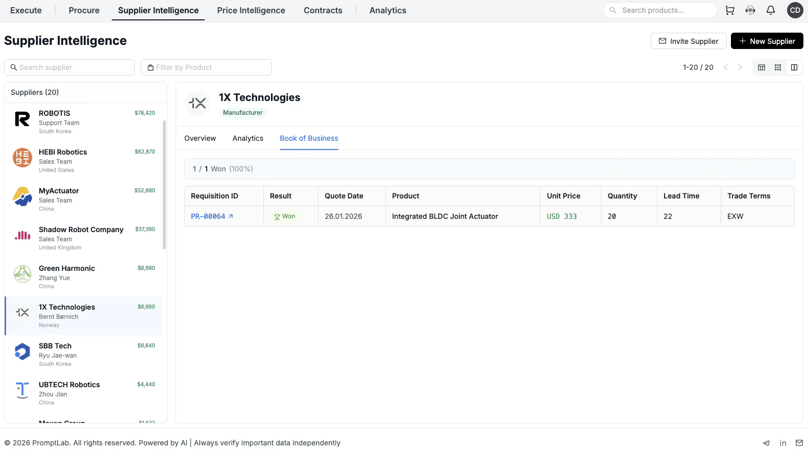 Track supplier spend, award history, and performance from first RFQ to final purchase.